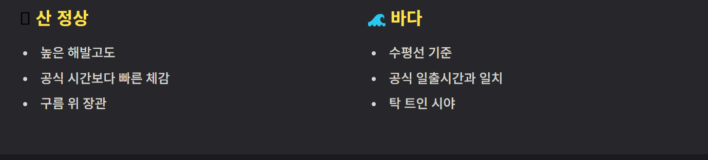 산과 바다 일출시간 차이