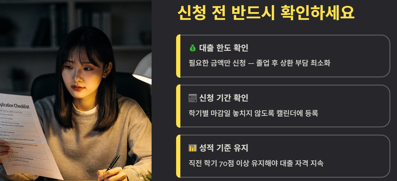 특히 졸업 후 상환 부담을 고려해 필요한 금액만 신청하는 것이 좋습니다.