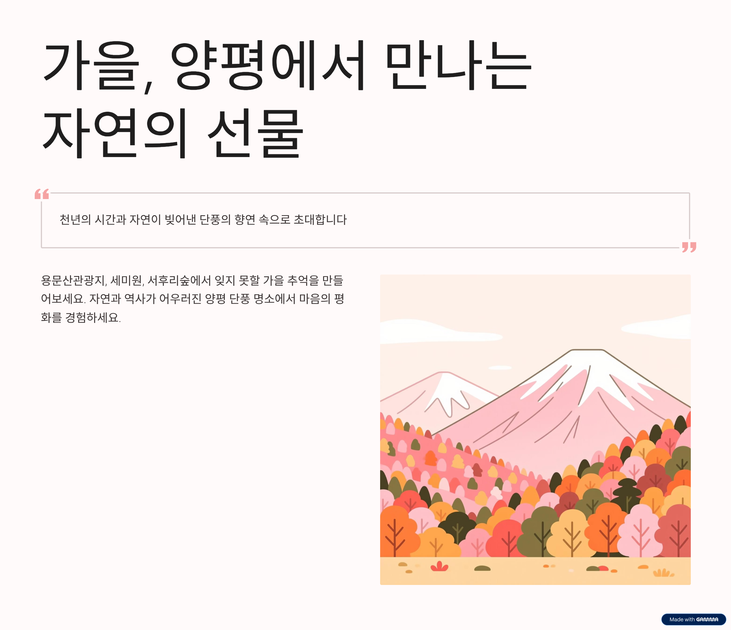 양평에서 아름다운 가을 단풍을 만끽하며 잊지 못할 추억 만드시길 바랍니다!