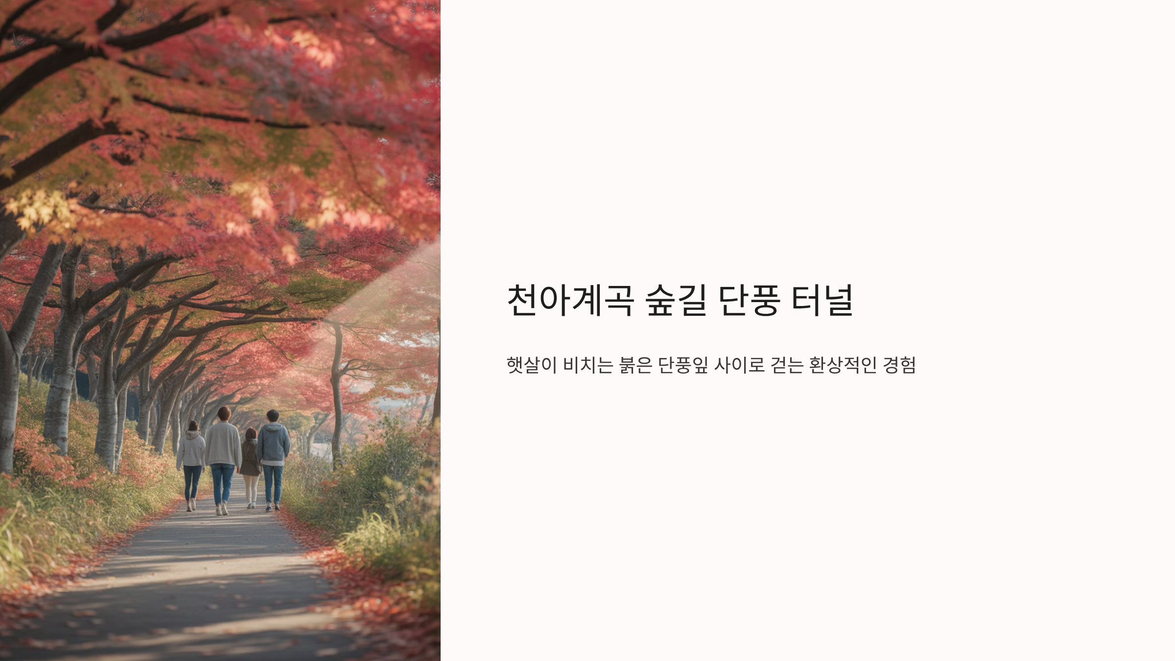 "제주 단풍은 육지 단풍과 다르다는 말을 들었는데, 천아계곡에 가보니 알겠더라고요. 계곡을 따라 펼쳐진 오색 단풍이 정말 환상적이었어요! 다만 주말에는 차량과 인파가 많으니, 되도록 오전 일찍 방문하는 것을 추천합니다. 숲길 난이도가 조금 있으니 꼭 편안한 운동화나 등산화를 신으세요!" (여행자 A씨)