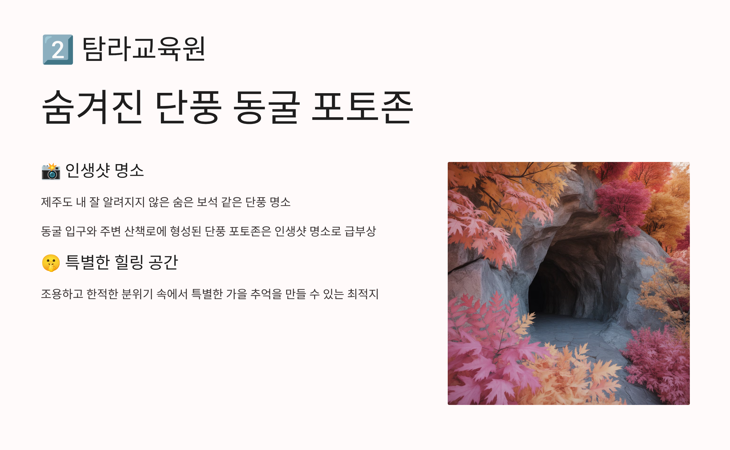 2️⃣ 탐라교육원: 숨겨진 단풍 동굴 포토존 명소 📸