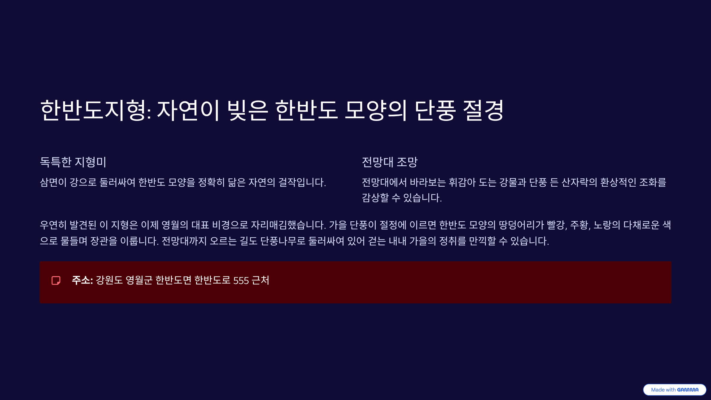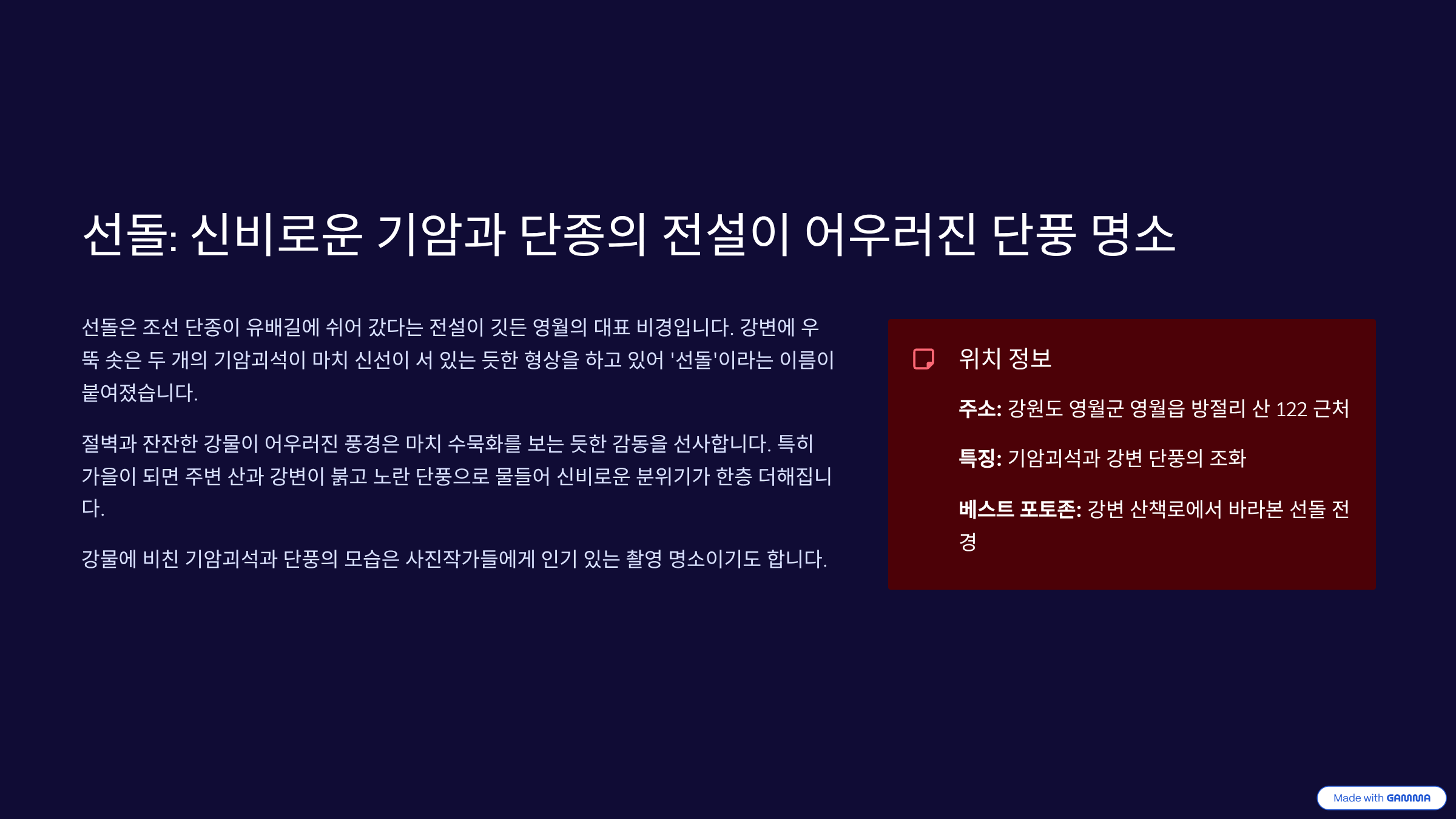 이 글이 여러분의 영월 가을 여행에 도움이 되셨기를 바라며, 즐거운 단풍놀이 되세요!