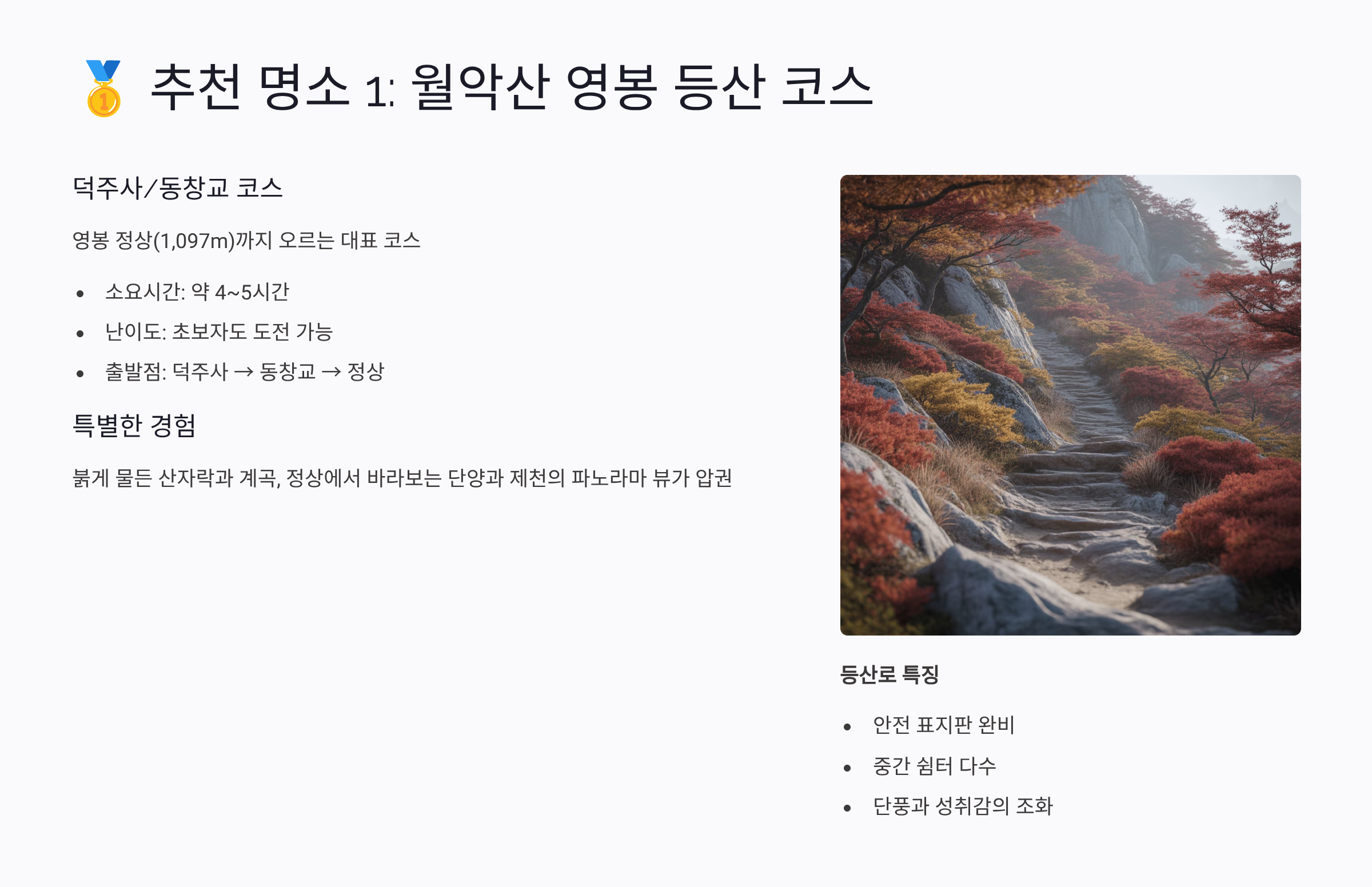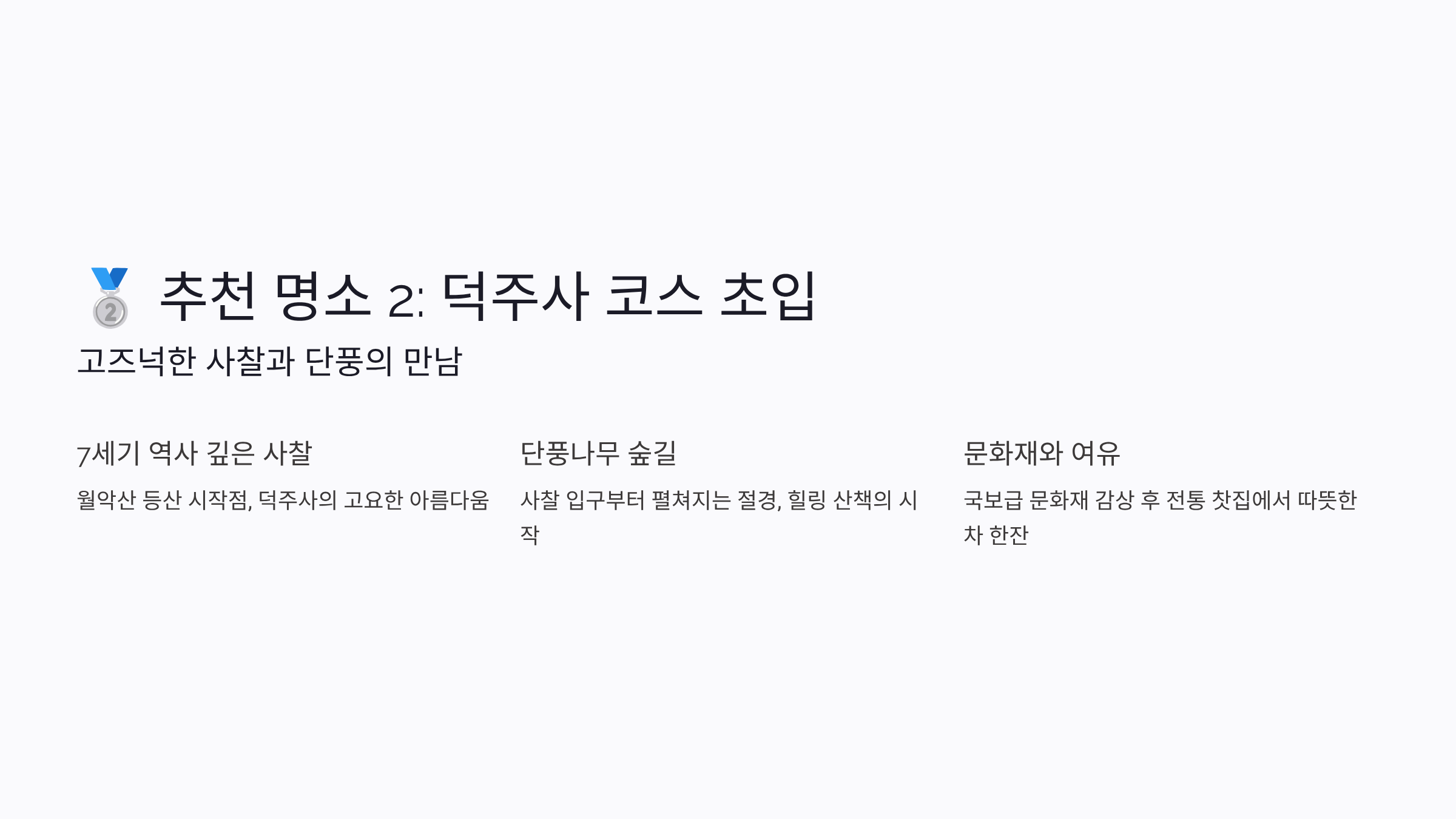 * ✅ 꿀팁: 덕주사 코스는 초입 500m 구간의 단풍이 특히 아름답고, 동창교 코스는 비교적 짧지만 경사가 급합니다. 체력에 맞춰 코스를 선택하세요!