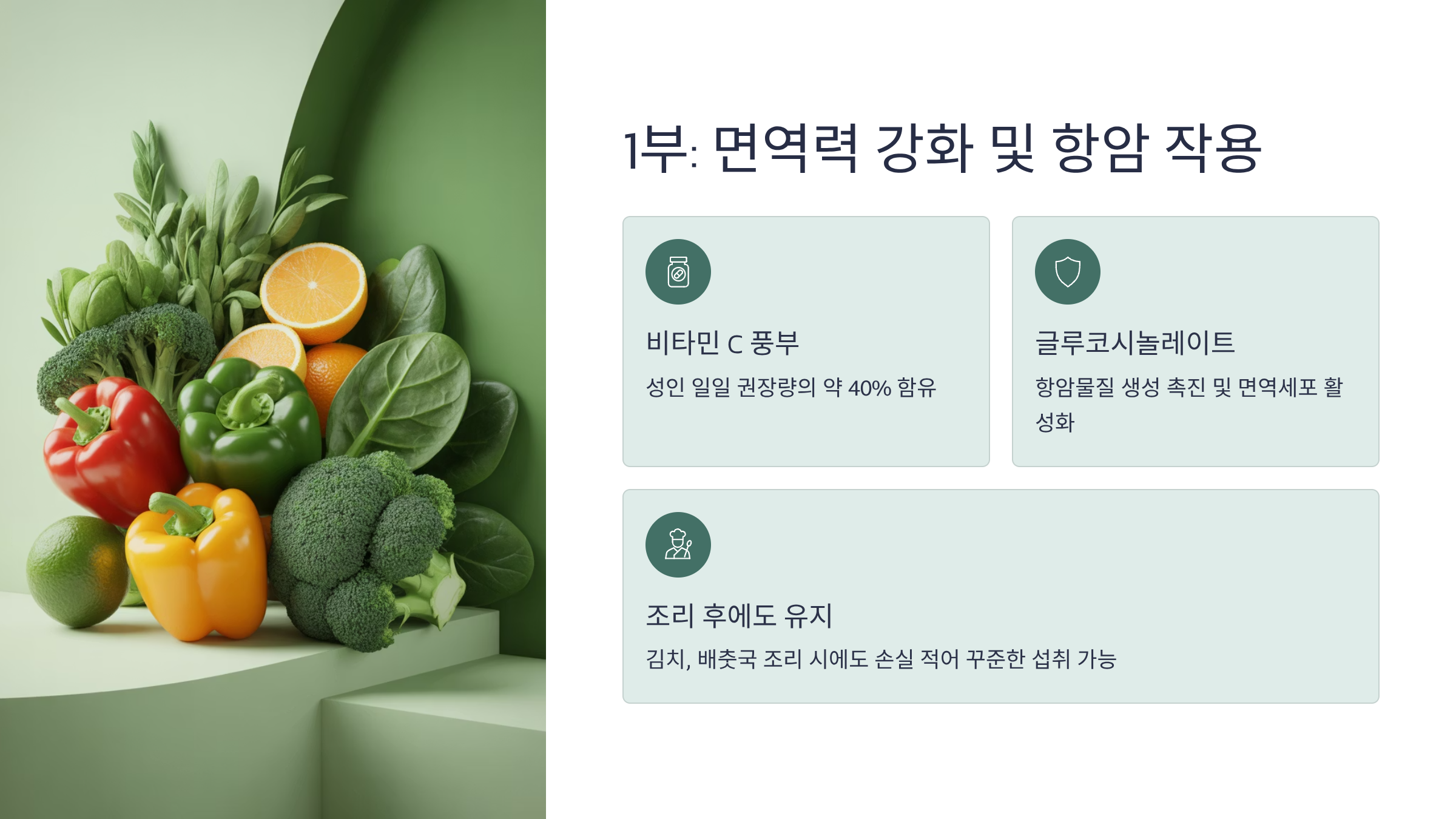 1. 면역력 강화 및 항암 작용 (비타민C와 글루코시놀레이트)