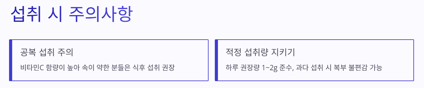 ⚠️ 단, 비타민C 함량이 높기 때문에 속이 약한 분들은 공복 섭취를 피하고,