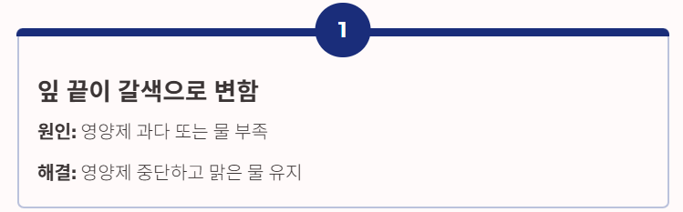 - 빛: 밝은 간접광 필수(직사광선은 잎을 태움)