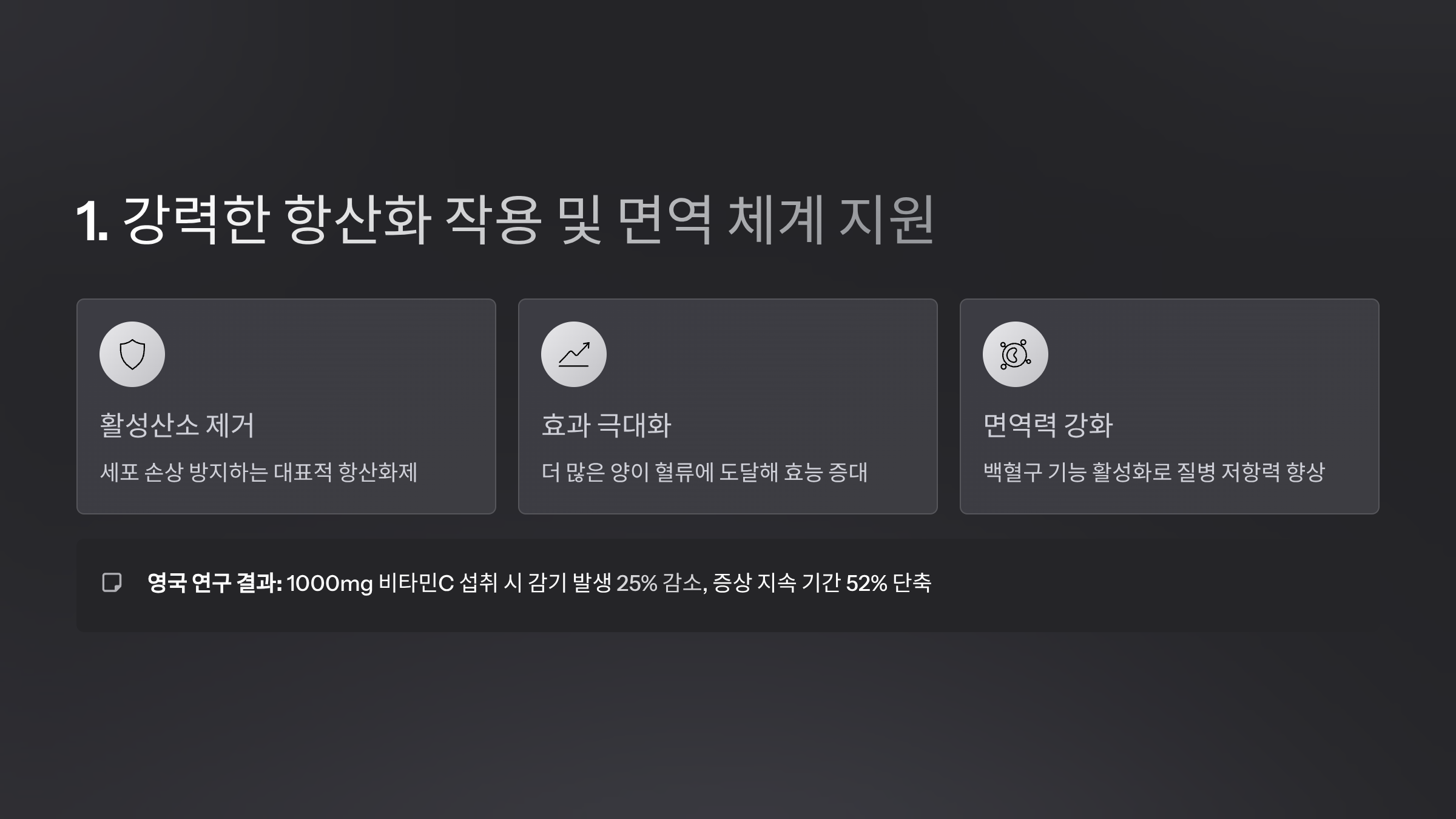 1. 강력한 항산화 작용 및 면역 체계 지원