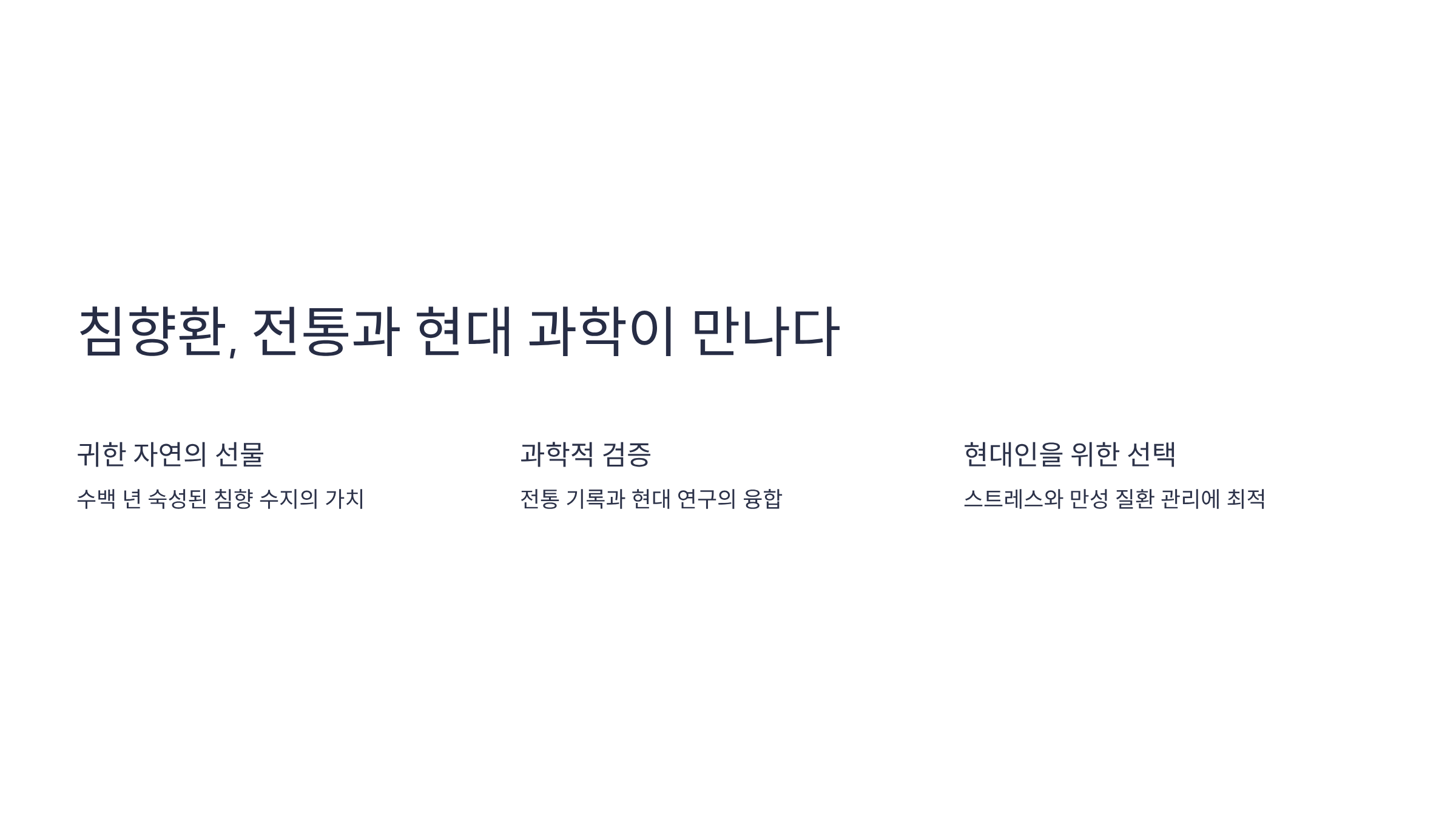 침향의 정유 성분은 뇌 활성에 긍정적인 영향을 미치며, 심리적 안정감을 주는 효과도 기대됩니다. 해외 연구기관의 보고에서도 침향을 소량 복용하거나 훈증했을 때 머리가 맑아지고 눈이 밝아지는 느낌을 받았다는 내용이 있습니다.
