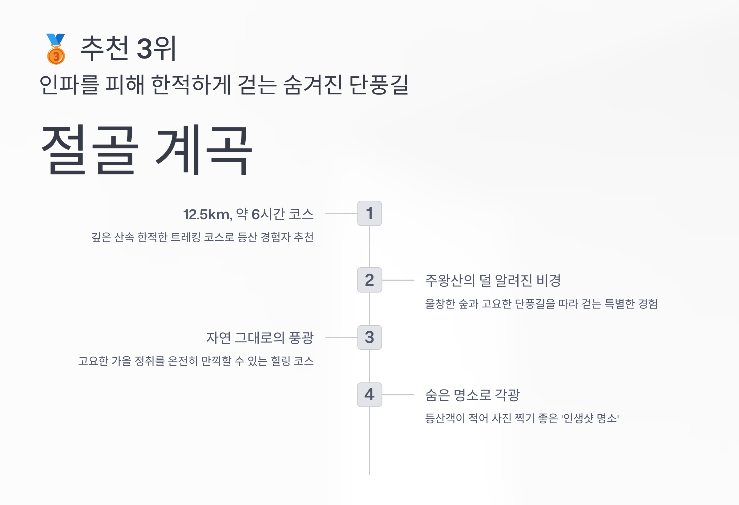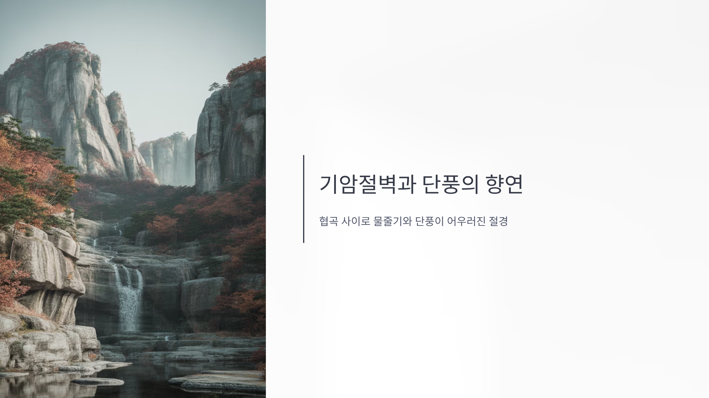 "메인 코스에 사람이 너무 많을 것 같아 절골 계곡으로 우회했는데, 탁월한 선택이었습니다! 물은 맑고 단풍은 알록달록 곱게 물들어 있었어요. 곳곳에 있는 작은 폭포와 소(沼)가 운치를 더합니다. '사람은 적고, 단풍은 풍성한' 나만의 비밀 단풍 명소를 찾은 기분이었습니다. 산행 난이도도 높지 않아 편하게 걸었습니다."