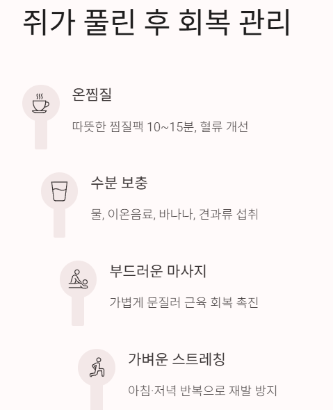경련이 풀렸다고 끝이 아닙니다. 근육은 여전히 피로한 상태이므로 회복 관리가 필요합니다.