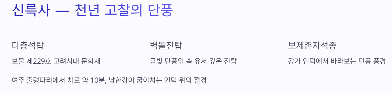 - 오후 2시: 신륵사 방문 및 단풍길 산책