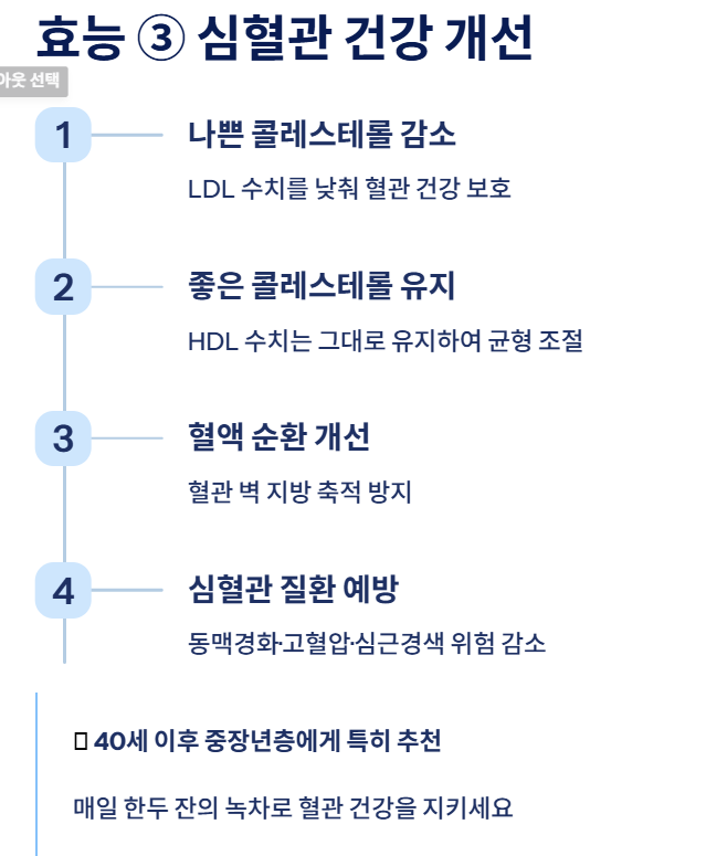 3️⃣ 세 번째 효능: 혈중 콜레스테롤 조절 및 심혈관 건강 개선