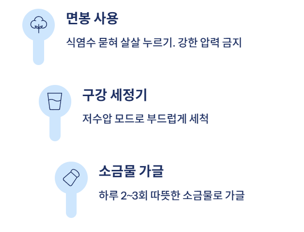 지금은 구강 세정기와 가글을 꾸준히 하며 예방 중이에요.