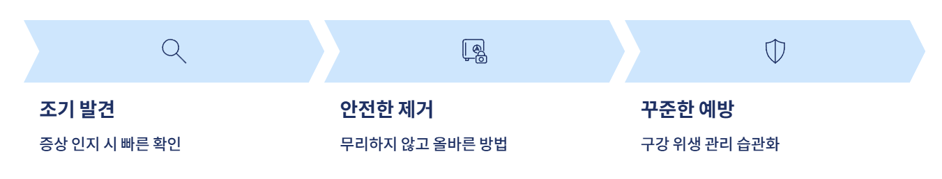 초기에 관리하고 올바른 방법으로 제거하면 통증 없이 깨끗한 구강 건강을 유지할 수 있습니다.