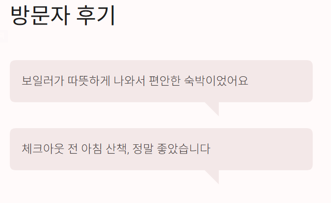 - 한 이용후기에는 “방에 도착하니 밤 10시 … 방에는 보일러가 풀로 나와서 따뜻하게 취침할 수 있었다. 산책로도 잘 되어 있고 하루 정도 머물러서 체크아웃 전에 산책해도 좋을 것 같다.”는 언급이 있습니다.