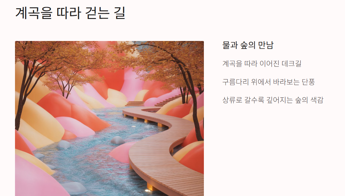 단풍철엔 이 계곡과 숲의 조합이 특히 멋지니, 산책로 선택 시 이쪽 길로 일부러 이동해 보는 걸 추천드립니다.