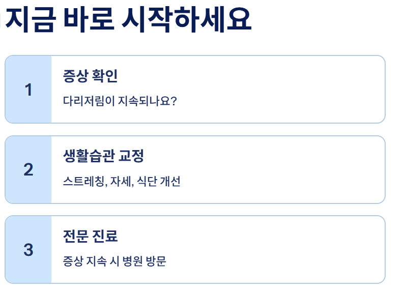 꾸준한 스트레칭, 올바른 자세, 균형 잡힌 식단만으로도 대부분의 다리저림은 예방할 수 있습니다.