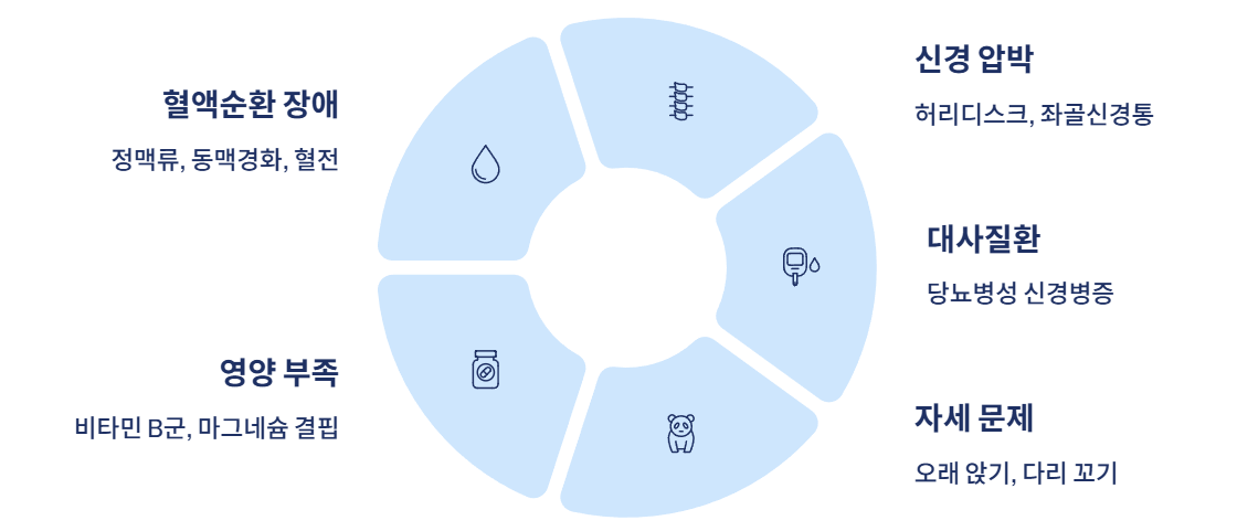 ‘다리저림’은 단순히 피로에서 오는 일시적 증상이 아니라 혈액순환 장애, 신경 압박, 당뇨, 디스크, 말초신경염 등 다양한 질환의 신호일 수 있습니다.