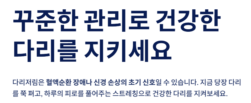 지금 당장 다리를 쭉 펴고, 하루의 피로를 풀어주는 스트레칭으로 건강한 다리를 지켜보세요.
