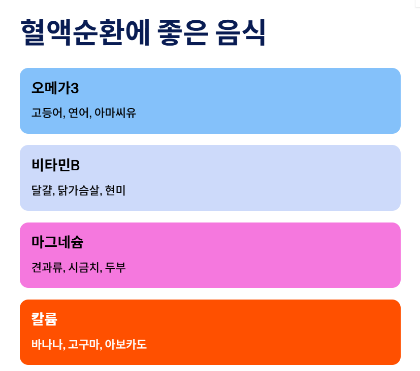 3️⃣ 혈액순환에 좋은 음식 섭취
