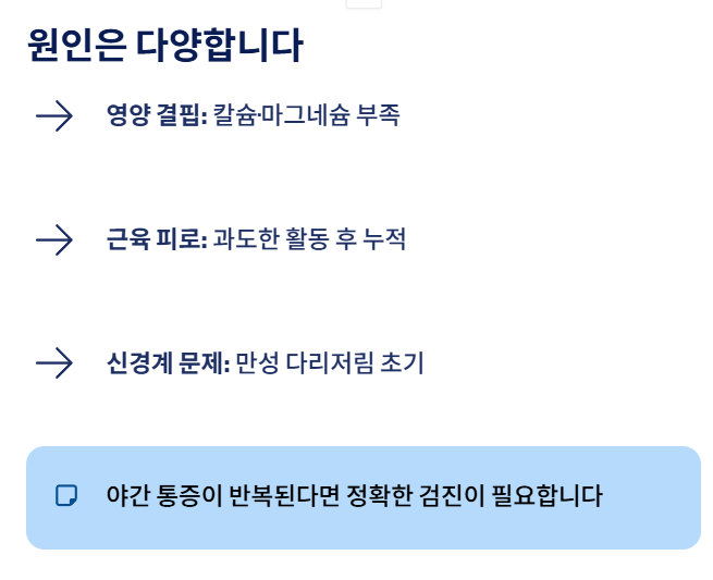 5️⃣ 밤에 다리에 쥐가 자주 남