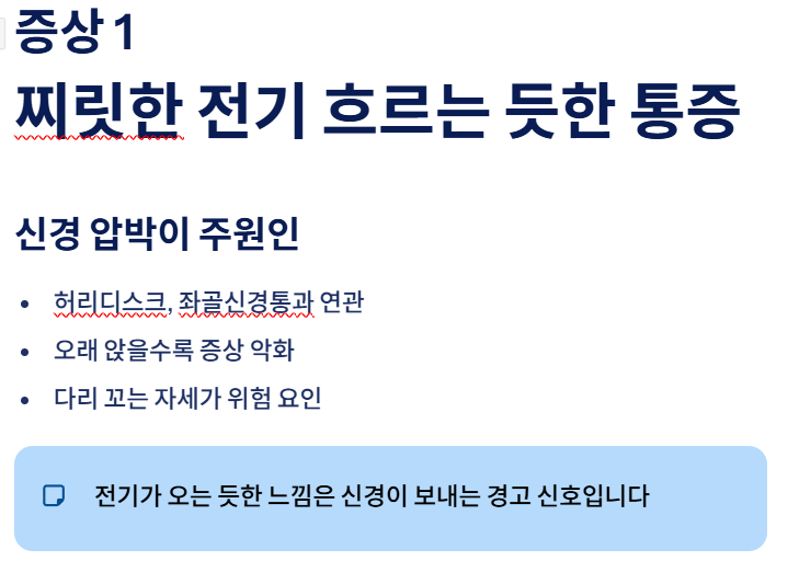 1️⃣ 다리에 찌릿한 전기 흐르는 듯한 통증