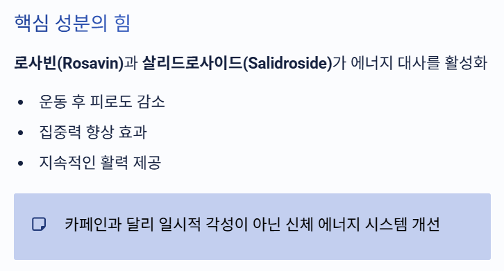 실제로 여러 임상 연구에서 홍경천 추출물을 섭취한 그룹은 운동 후 피로도 감소와 집중력 향상을 경험했다고 보고되었습니다.
