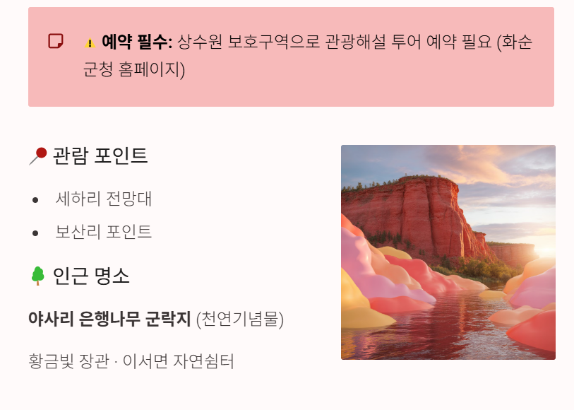 - 투어 예약 필수: 화순군청 홈페이지 또는 화순적벽 관광 예약 페이지