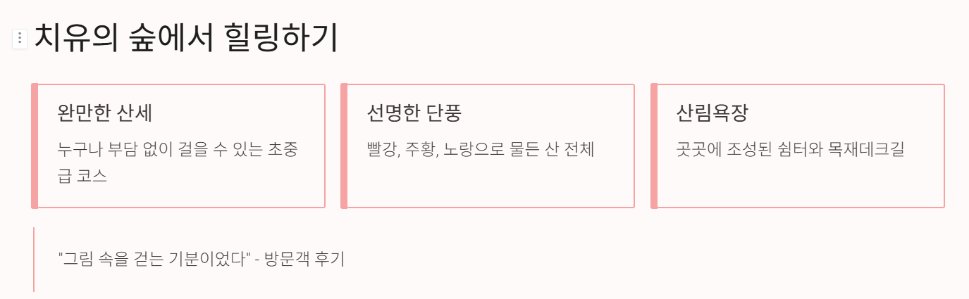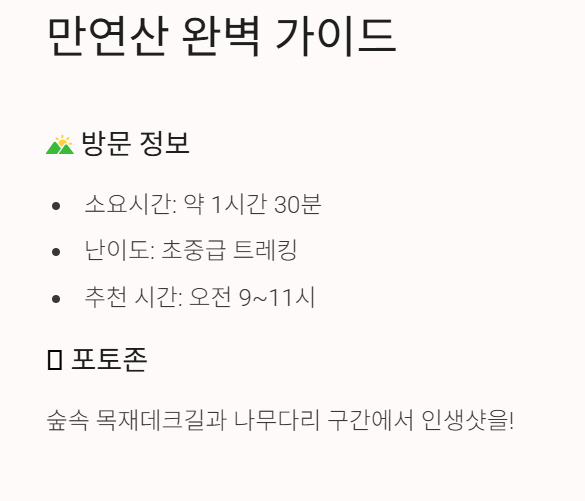 - 코스 난이도: 초중급 – 가벼운 트레킹 코스