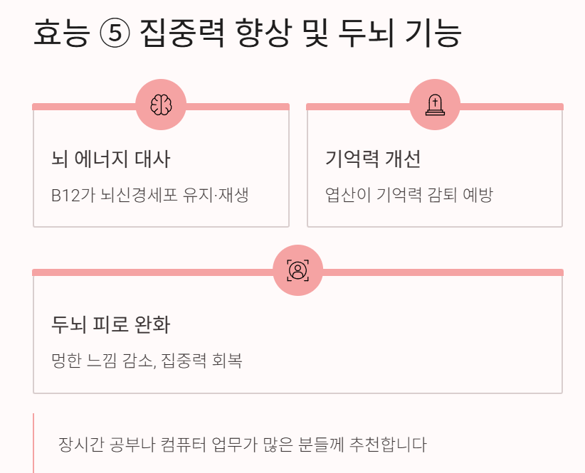 ✅ 5. 집중력 향상 및 두뇌 기능 지원