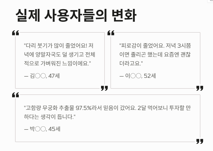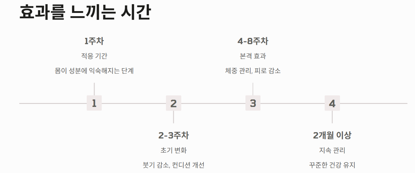 - “처음 1-2주는 특별한 변화가 없었어요. 꾸준히 먹어야 효과가 나타나는 것 같아요.”