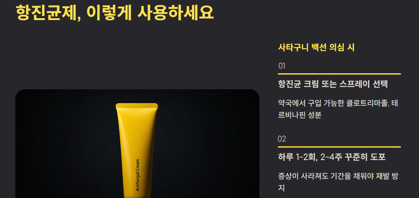 사타구니 백선이 의심되면 항진균 크림이나 스프레이를 2~4주간 꾸준히 사용합니다. - 보습 관리
