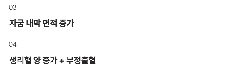 - 증가 기전: 두꺼워진 자궁 내막층에서 나오는 출혈량이 많아지고, 자궁 근육층이 출혈을 효과적으로 조절하지 못해 월경과다와 함께 심한 생리통을 유발합니다.