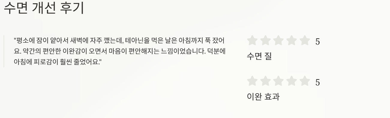 “평소에 잠이 얕아서 새벽에 자주 깼는데, 테아닌을 먹은 날은 아침까지 푹 잤어요.