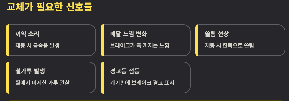 ② 브레이크패드 교체가 필요한 대표적인 신호
